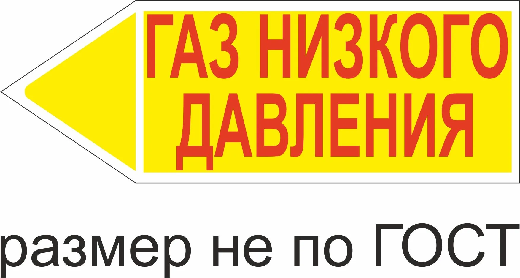 Маркер самоклеящийся Газ низкого давление 74х210 мм, фон желтый, буквы красные, направо