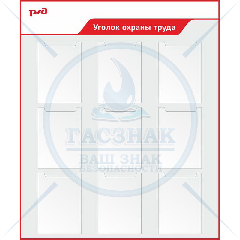 Стенд Охрана труда. ( Пластик ПВХ 4 мм 1250х950; Алюминиевый профиль; 8 карманов А4)