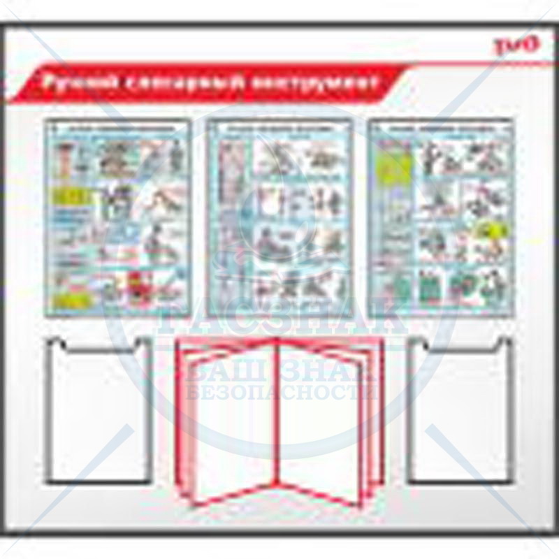 Стенд информационный, пластиковый Уголок по охране труда, профиль ПВХ красный, 12 карманов А4, 1250х1250