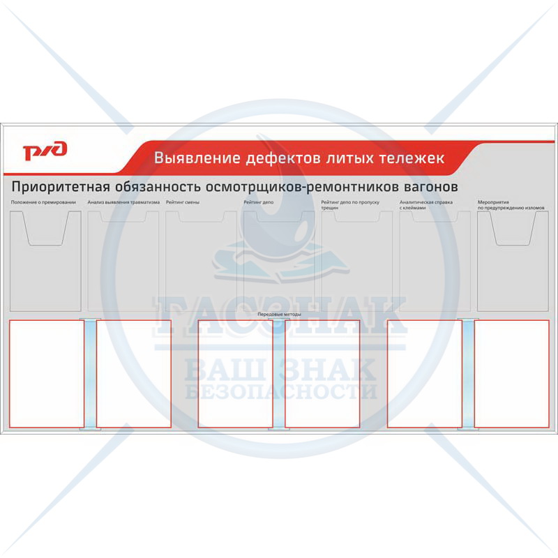 Стенды по охране труда для ОАО РЖД Транспортная безопасность, 8 плоских карманов А4 (Пластик ПВХ 4 мм, алюминиевый профиль; 1150х850)
