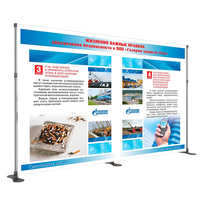 - Рекламное поле: min 240x100 см., max: до 500х300 см.