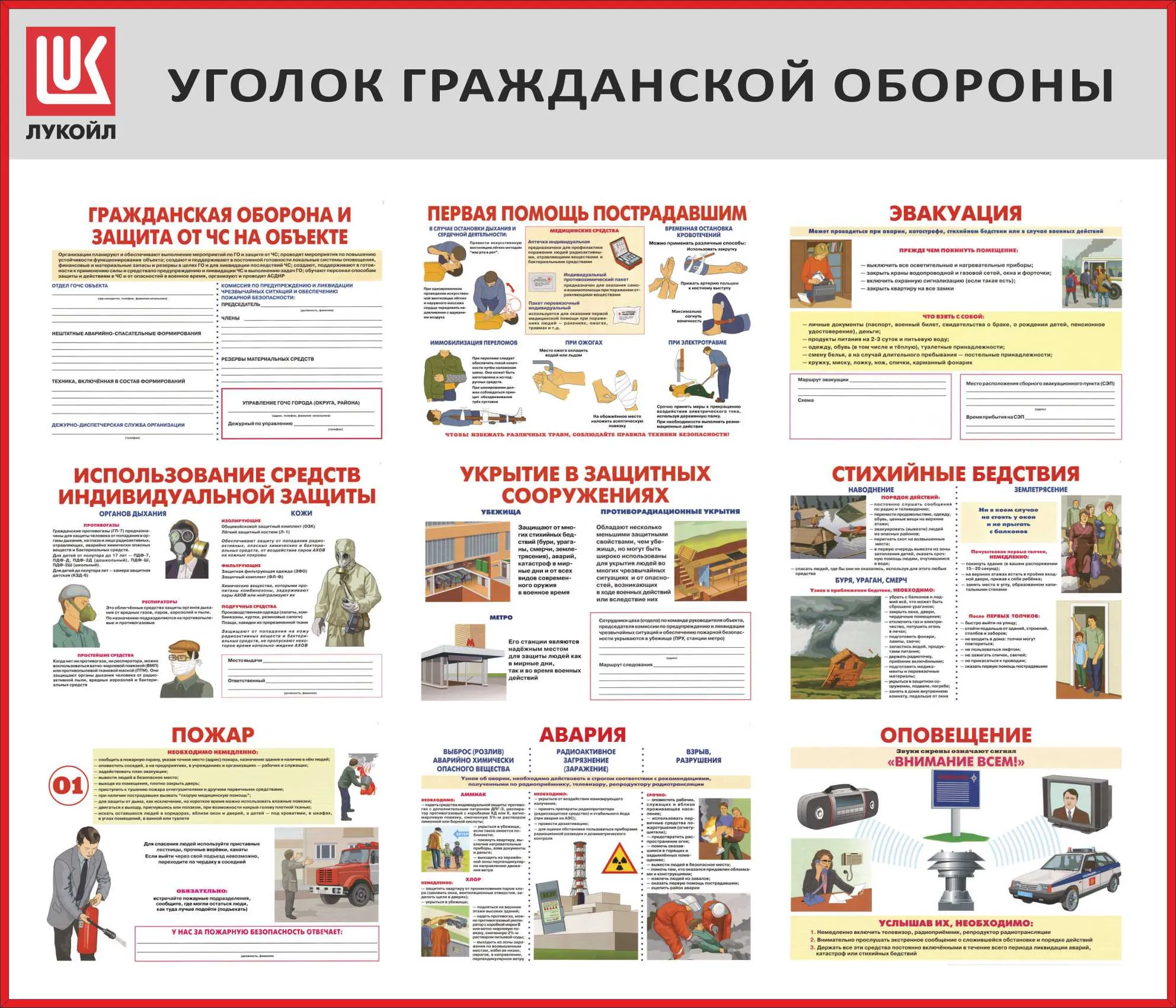 Стенд Уголок гражданской обороны, 9 плакатов А3 (1400х1200; Пластик ПВХ 4 мм, алюминиевый профиль; Алюминиевый профиль)