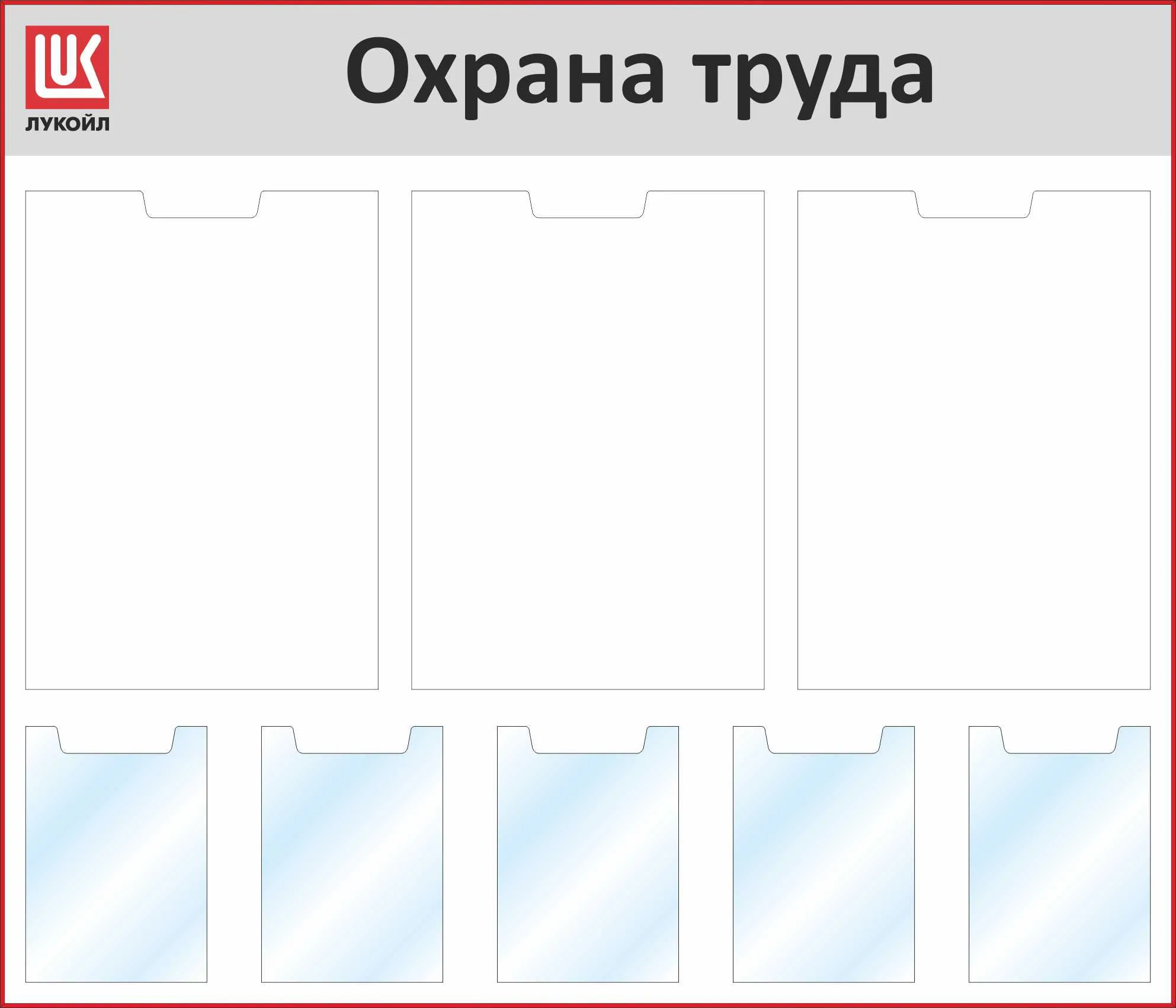 Стенд Уголок охраны труда, 6 объемных карманов формата А4, 3 перекидные устройства формата А4 на 5 листов (1700х1300; Пластик ПВХ 4 мм,Алюминиевый профиль)