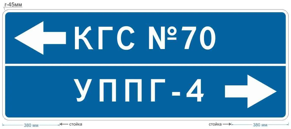 Знак индивидуального проектирования 6.10.1 "КГС № 70 (налево) УППГ-4 (направо)"